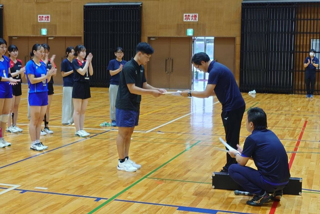 準優勝を果たしたバレーボール部に表彰状が贈られます。
