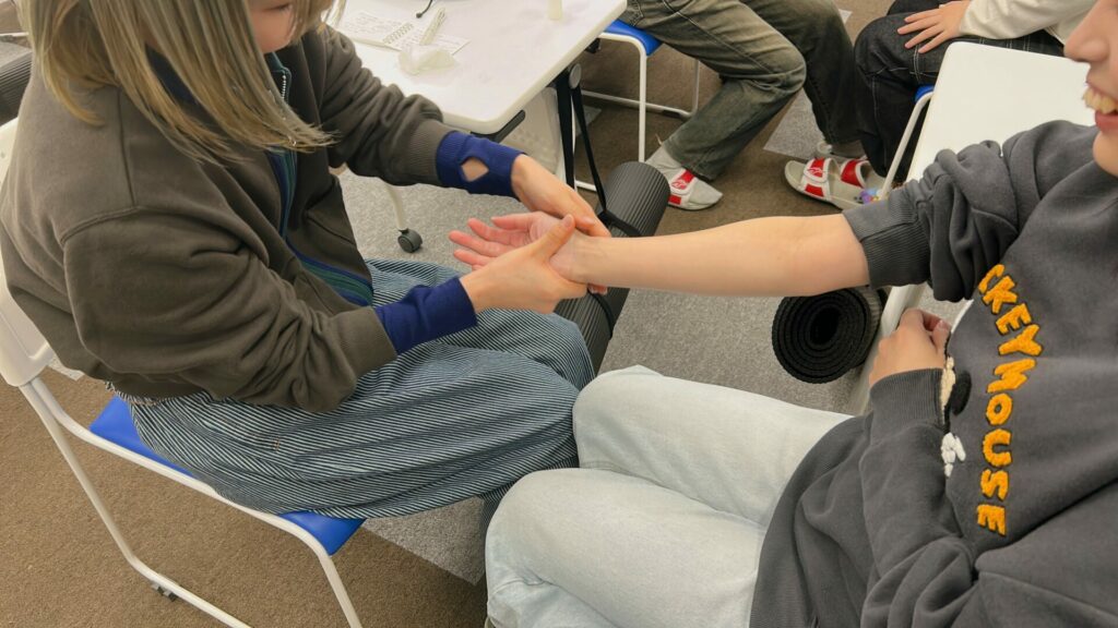 説明会に来て頂いた方は、元セラピストの方で、学生の手や腕を触っただけで